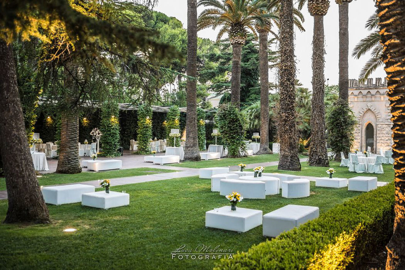 The oldest part of Villa de Grecis dates back to the end of the 18th century, when the family of the same name moved from Trani to Bari and made the residence their summer residence, buying an old farmhouse in the countryside just outside the city. Today, Villa de Grecis is an integral part of Bari and has numerous indoor and outdoor spaces that are well suited to any kind of event: at the front, the dense trees form a welcoming and private natural amphitheatre around the courtyard in front of the residence. The Orangerie, a modern and welcoming structure immersed in the 19th century park, is situated in the rear part, characterised by a large lawn, shaped by the ancient walls of the “hortus inclusus”.